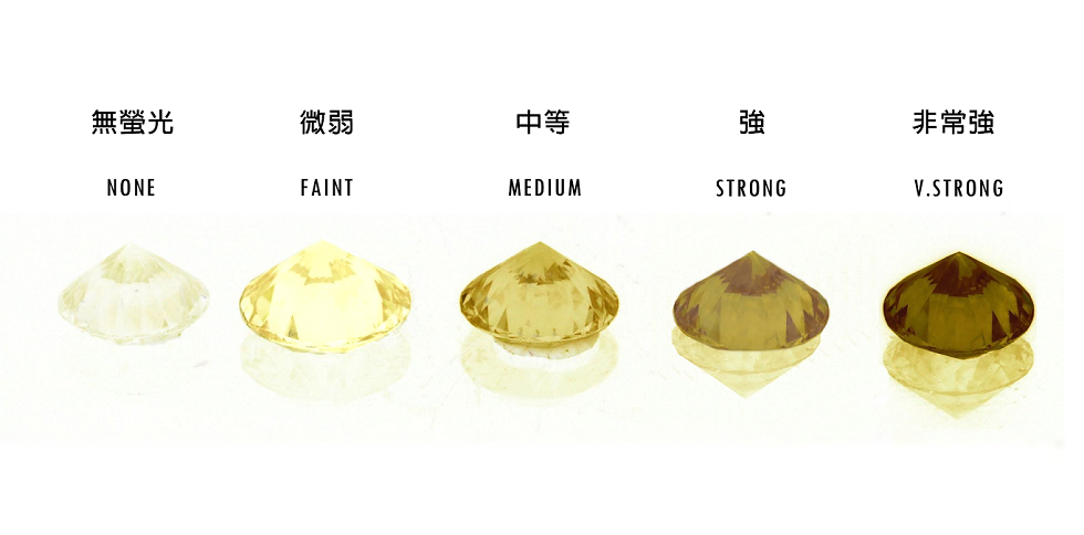 GIA 證書會標示螢光等級:None、Faint、Medium、Strong、Very Strong,作為選購時的重要參考。