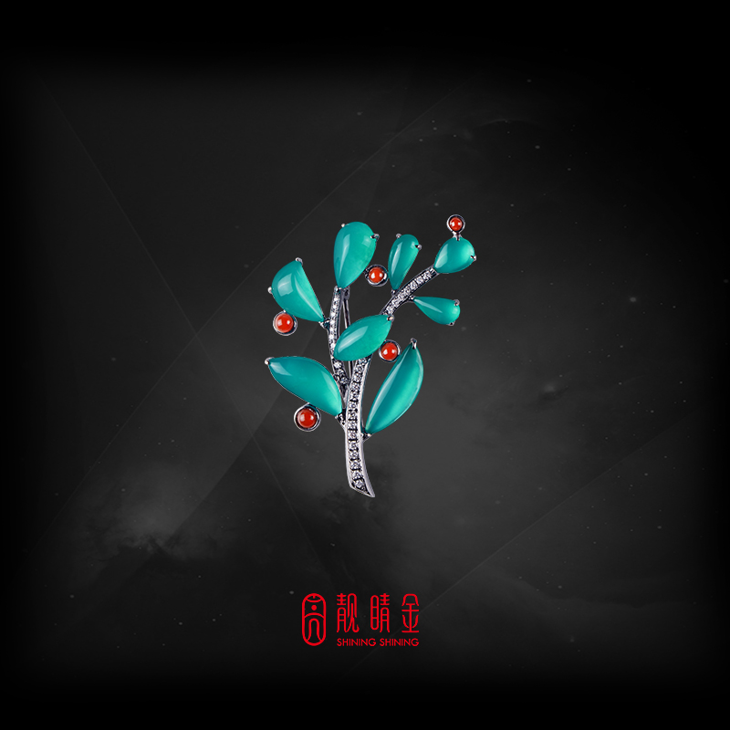 珊瑚5顆0.15克、圓鑽30顆0.31克拉 |