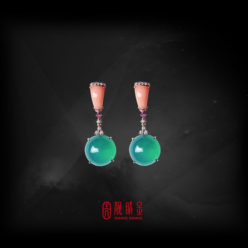 珊瑚2顆0.75克、粉色藍寶石2顆0.10克拉、圓鑽22顆0.48克拉 |